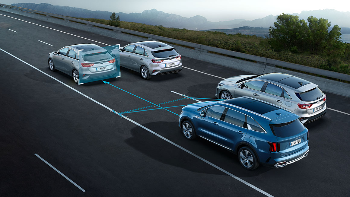 Die Technologie erhöht deine Sicherheit indem sie hilft, mögliche Kollisionen mit Fußgängern, Radfahrern oder anderen Fahrzeugen zu vermeiden. Falls du bei einer Warnung nicht schnell genug reagierst, übernimmt dein Sorento das Bremsen.⁹
